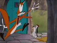 - Reginald runs into a hollow log with a dog pursuing him. Reginald puts on a white log so as to make it look like the dog's hand is sticking out on the other side. Knowing that hand is a trick, the dog pulls out a gun and shoots it but finds out he shot his own hand. He then chases Reginald through an empty stump. Unknown to him, Reginald is hiding behind him. When the dog catches on to Reginald's trick, he heads for the master's house quickly to show he caught Reginald but the fox is gone. When the dog leaves, the master rubs his head, not knowing Reginald's behind him.