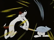 There are a series of attempts to catching Reginald which not only end in failure for the dogs but also lead to all but Droopy getting injured: