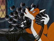 - Four dogs come after Reginald. Seeing this, the fox tosses four bricks up in the air which knock out three dogs. Just when the fourth one manages to reach the master's house with Reginald inside, a brick lands on him knocking him out and Reginald escapes.